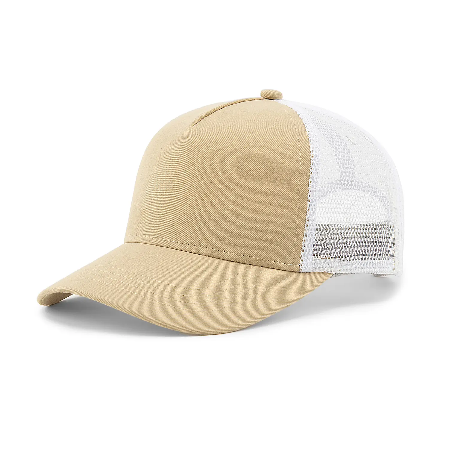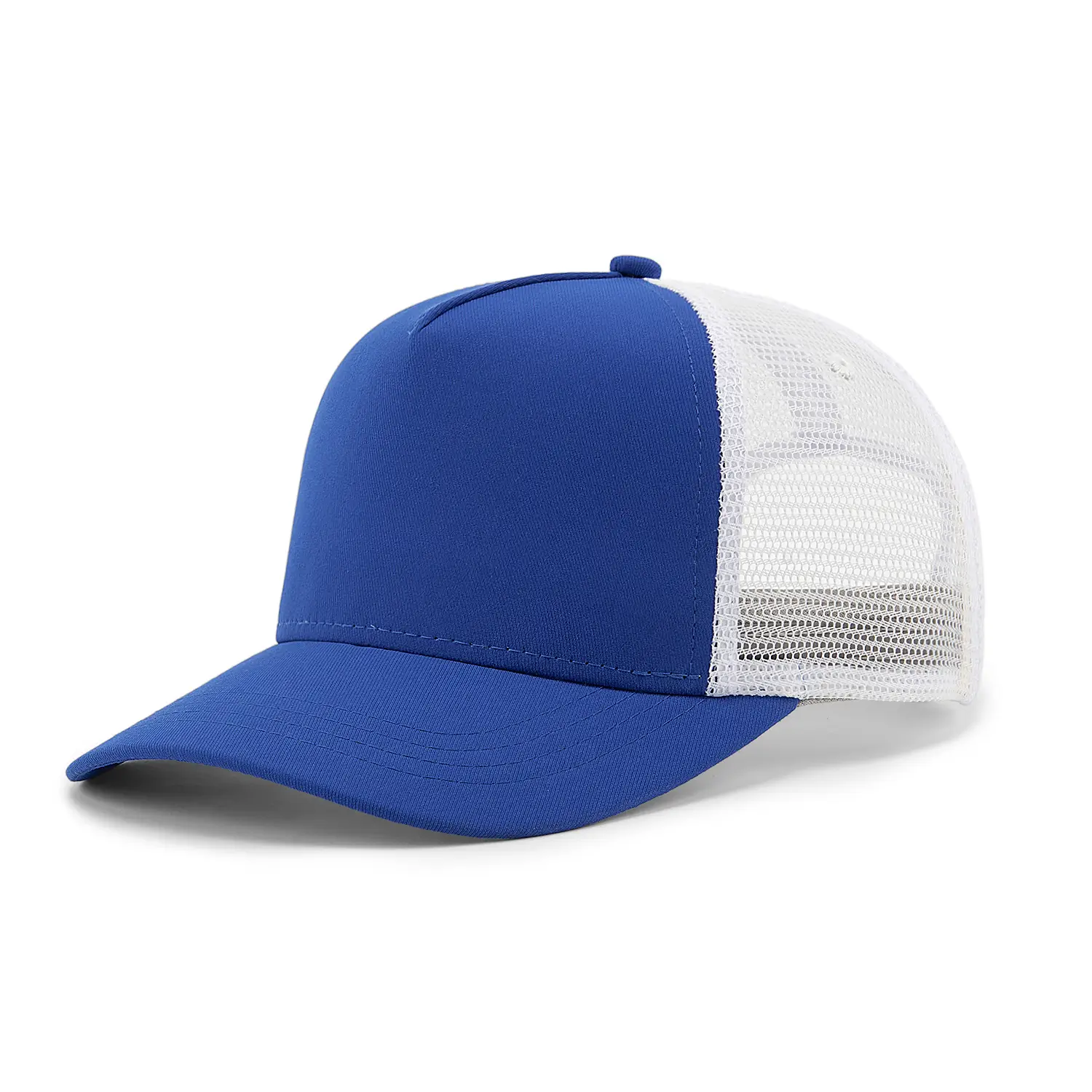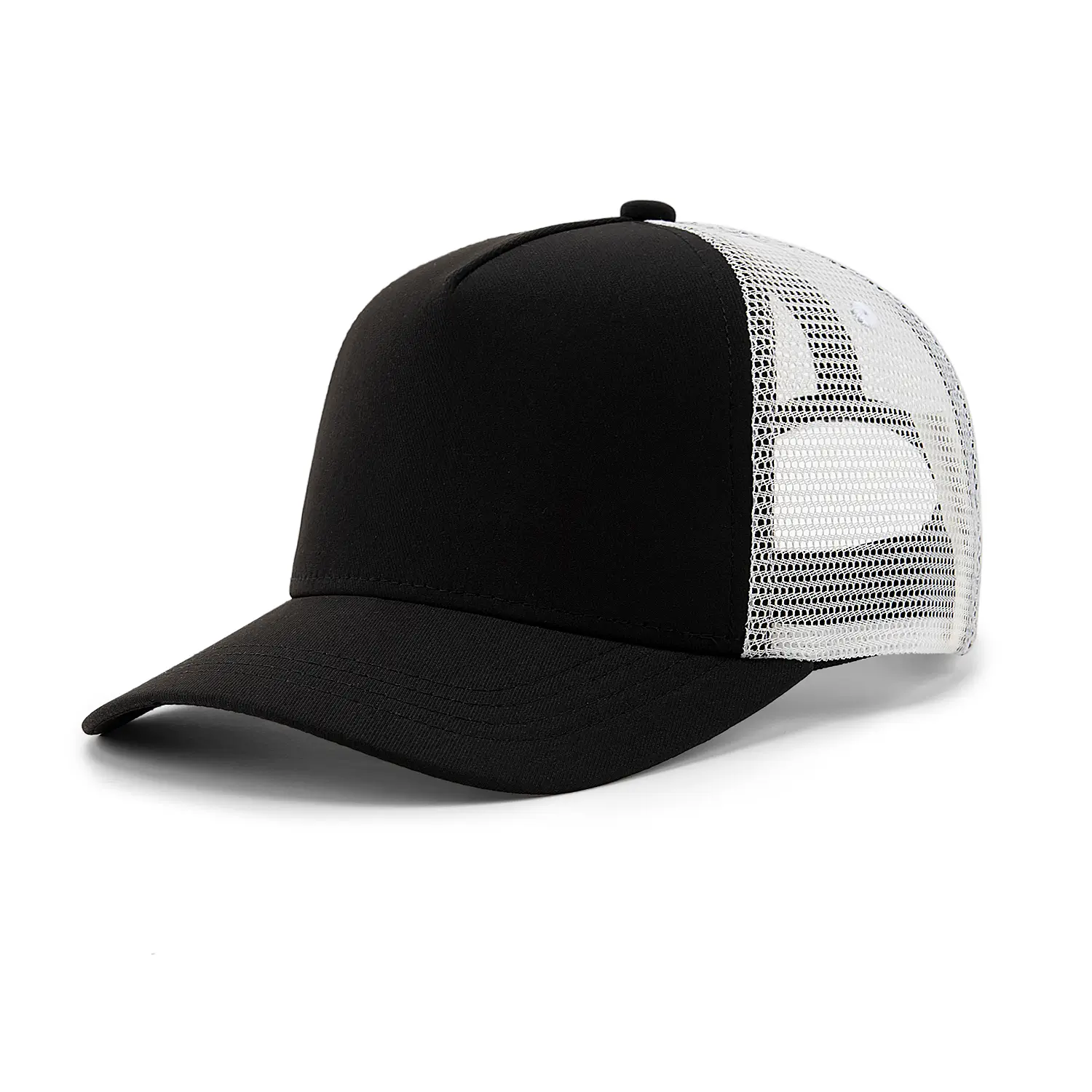 100% RPET Blank 5-Panel Mesh Trucker Cap, 2-Tone – Experience breathable comfort with our blank 5-panel mesh trucker cap, constructed from 100% recycled PET and featuring a modern two-tone design.