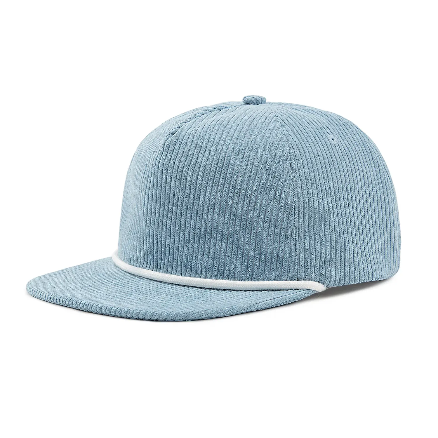 100% RPET Corduroy Blank Snapback Cap – Classic 5 panels with a flat brim, neutral style perfect for vacation.