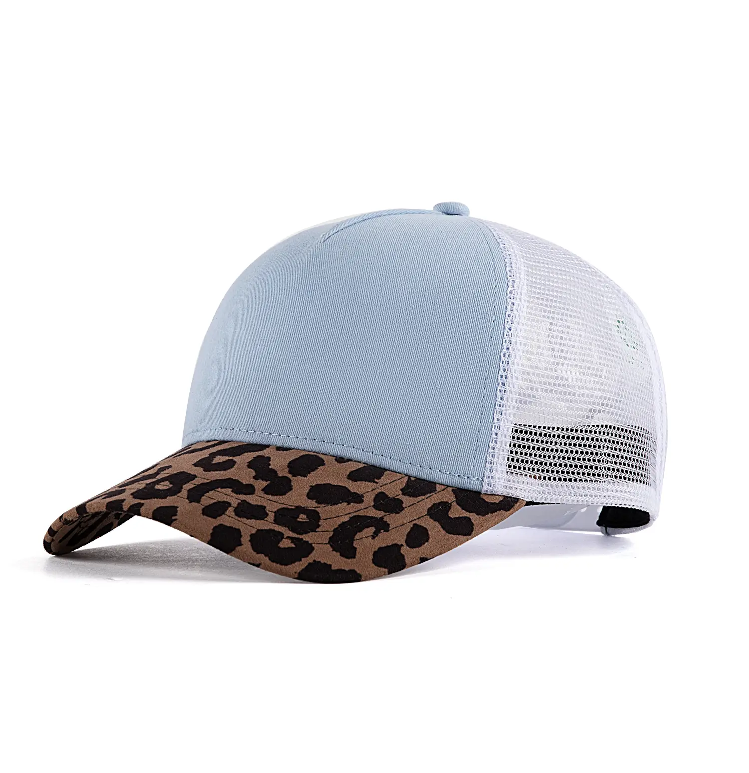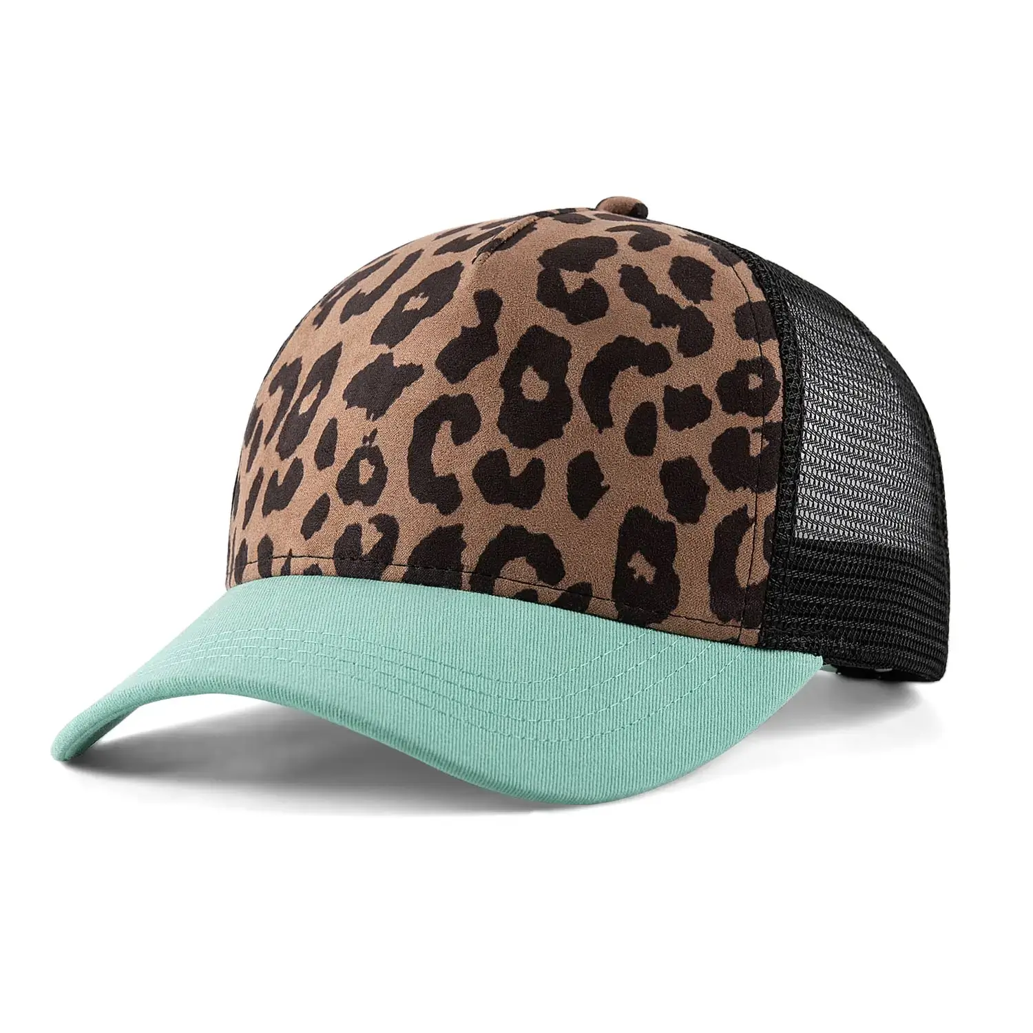 2. Eco family-matching leopard blank trucker cap: Featured family-matching design with two-tone color and leopard patterns, this eco blank trucker cap is delicate, fashionable yet versatile.