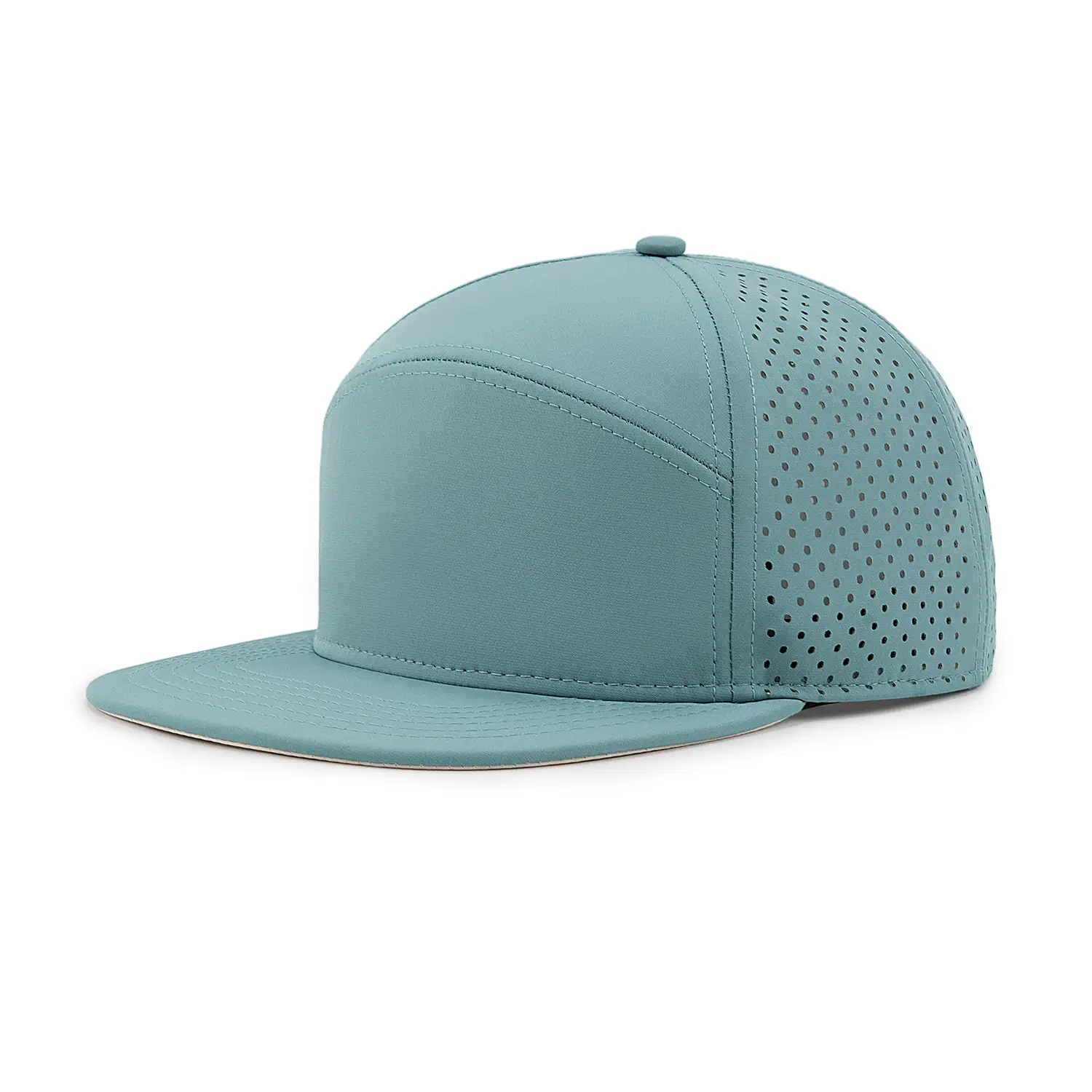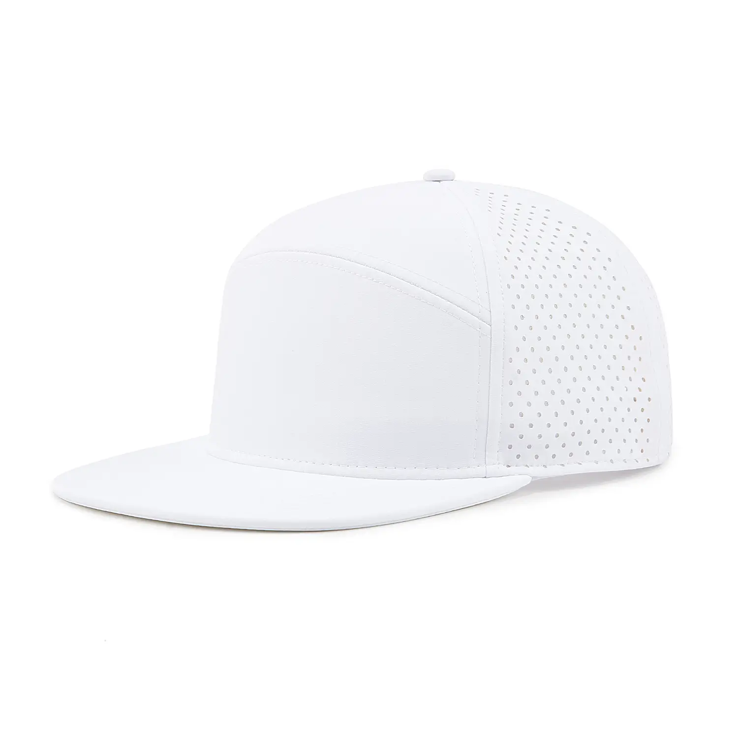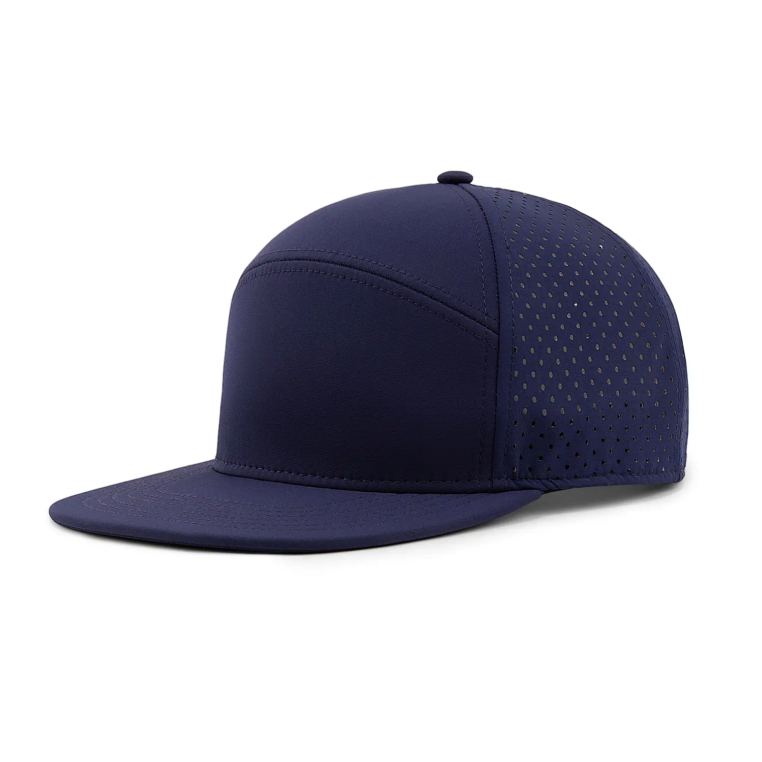 Performance Blank Snapback Hat Laser Perforated Cap – This is a complementary shape for wider faces and people who enjoy a deeper fitting or modifying a flat bill. The horizontal front seam makes for a very comfortable hat and naturally follows the shape of the human head.