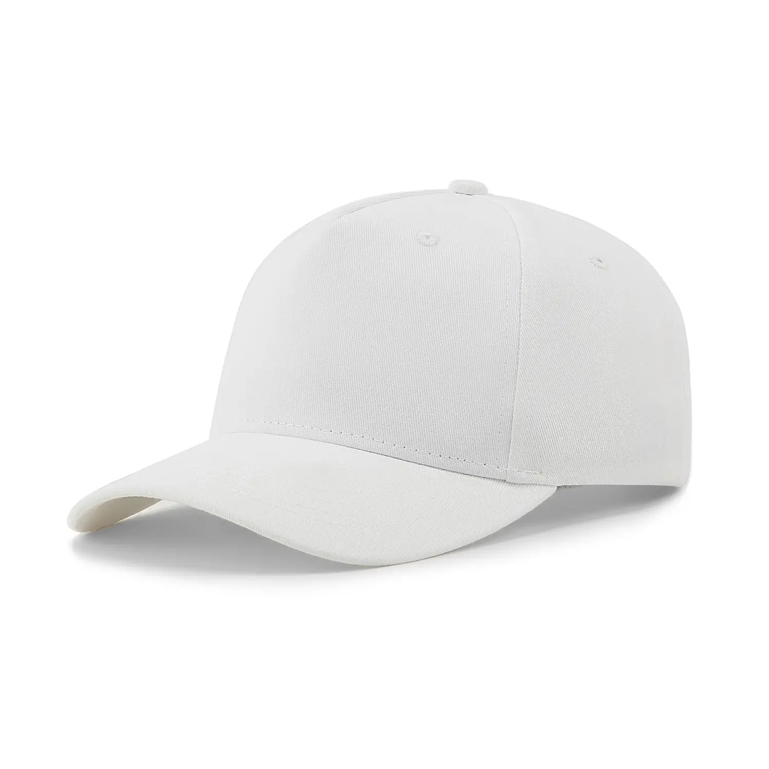 Structure: High-profile, structured, 5 panel cap, curved bill, blank