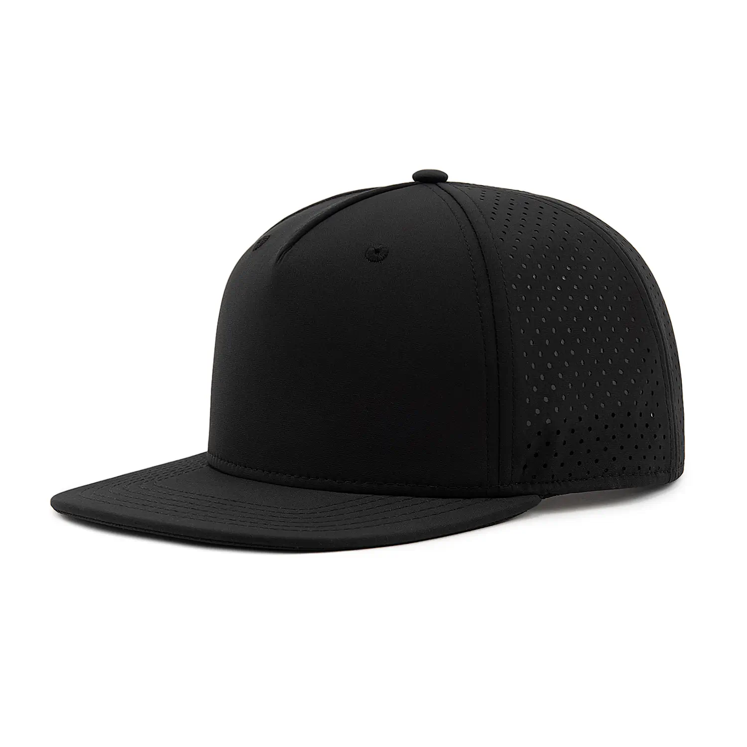 5. Adjustable snapback fit: These sustainable performance blank snapback hats have a flexible plastic closure ensuring a secure and customizable fit for everyone.
