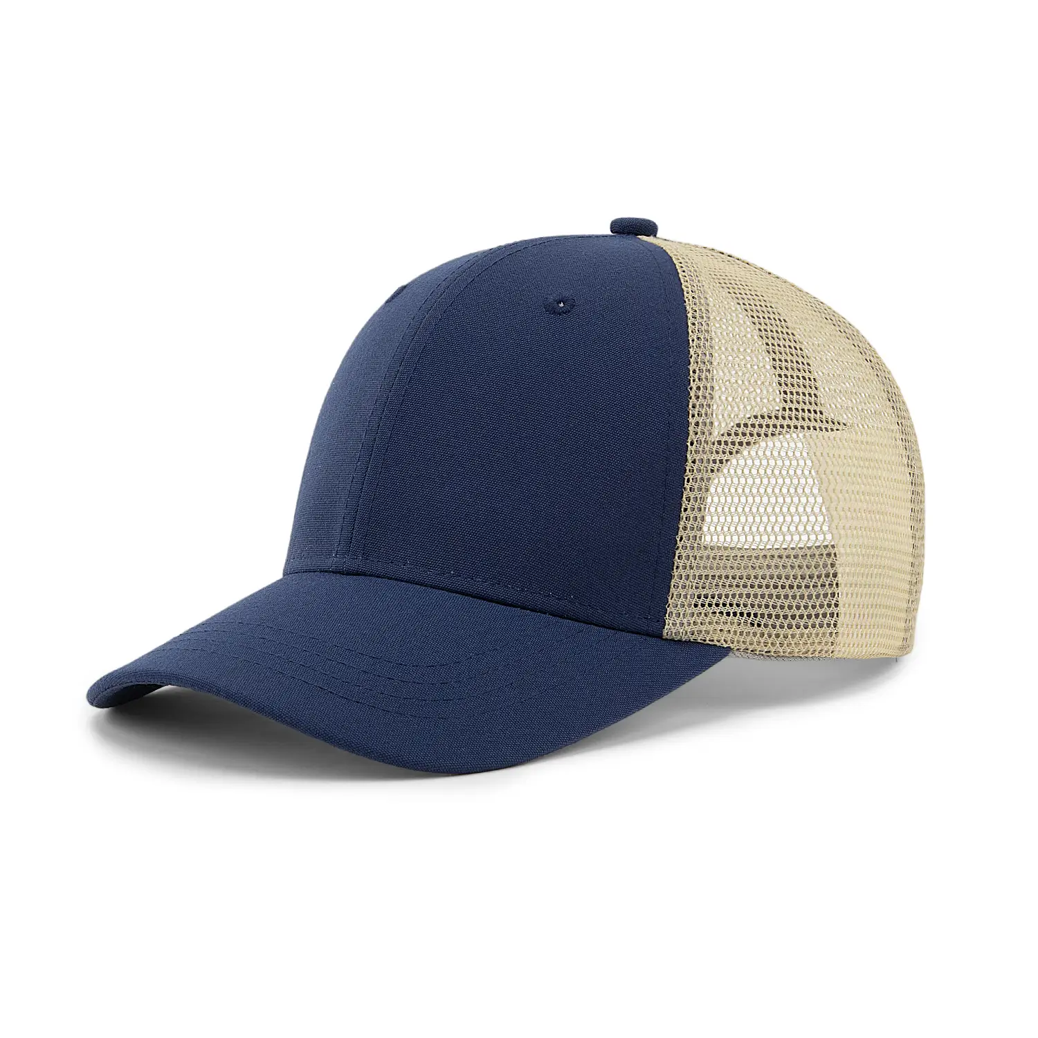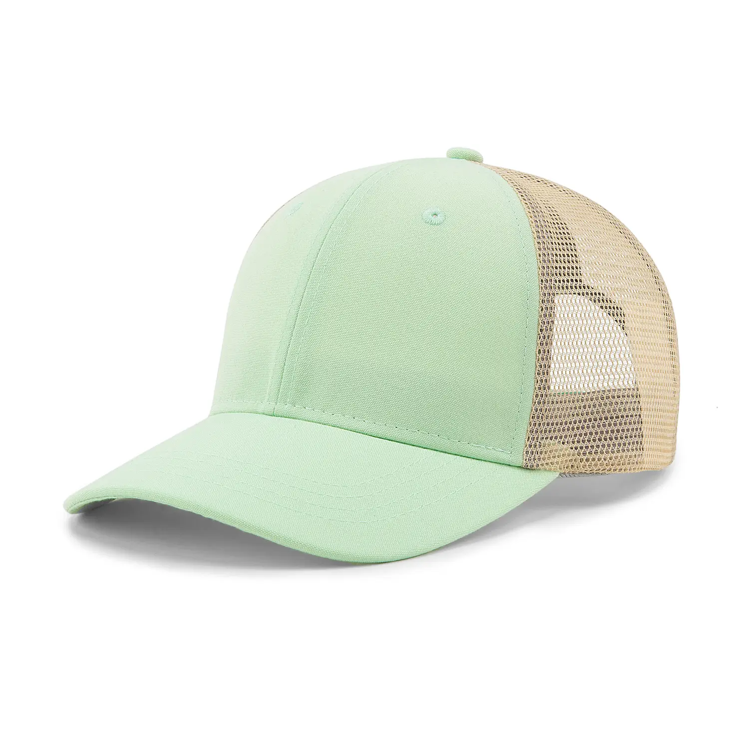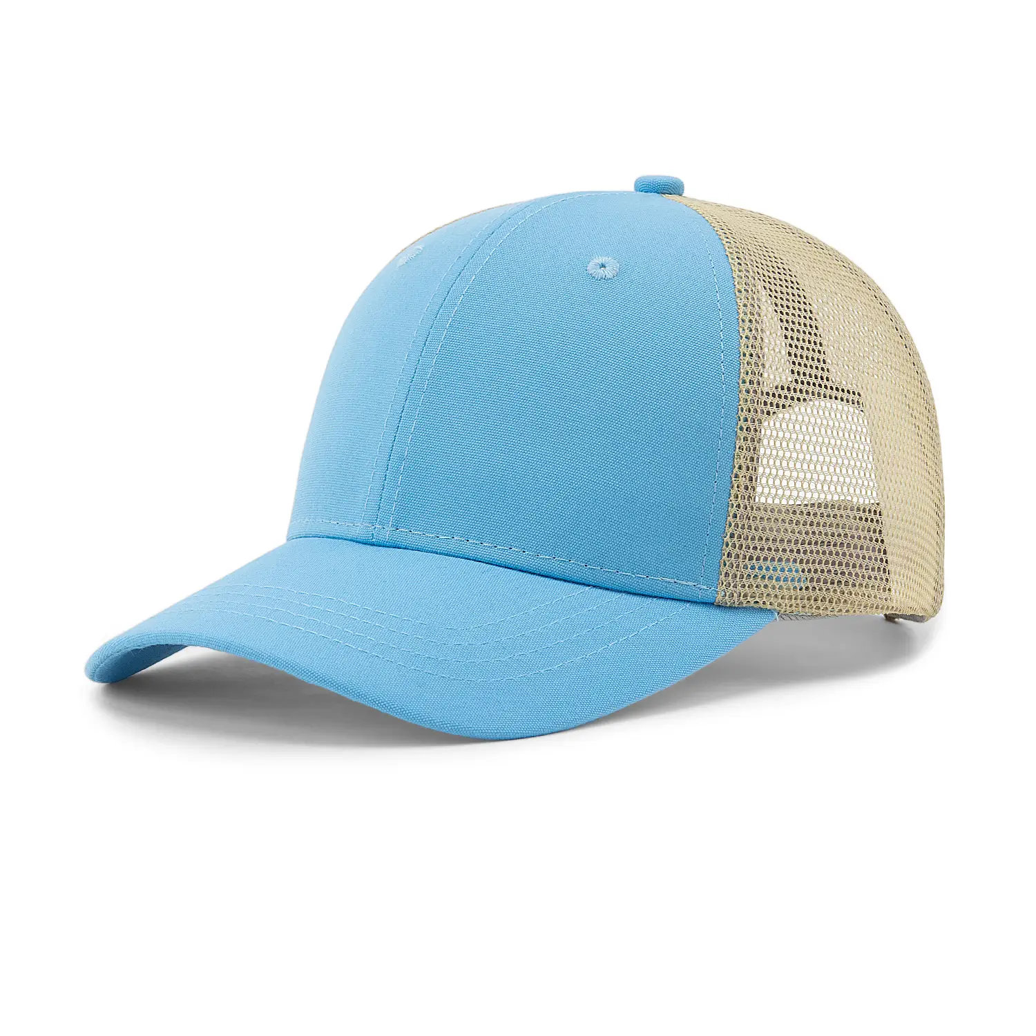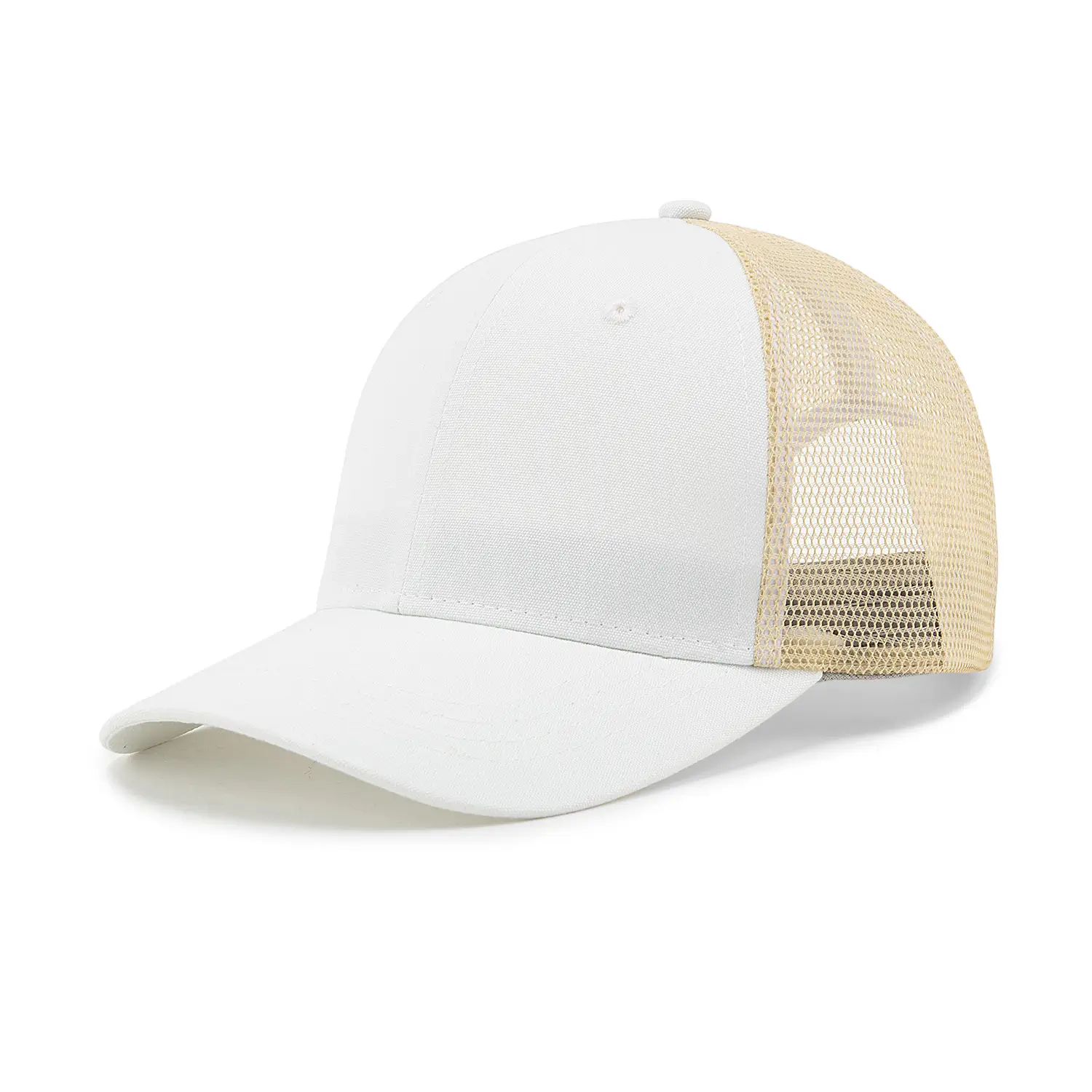 2. Classic blank trucker design: Timeless 6-panel two-tone construction for a vintage-inspired look.