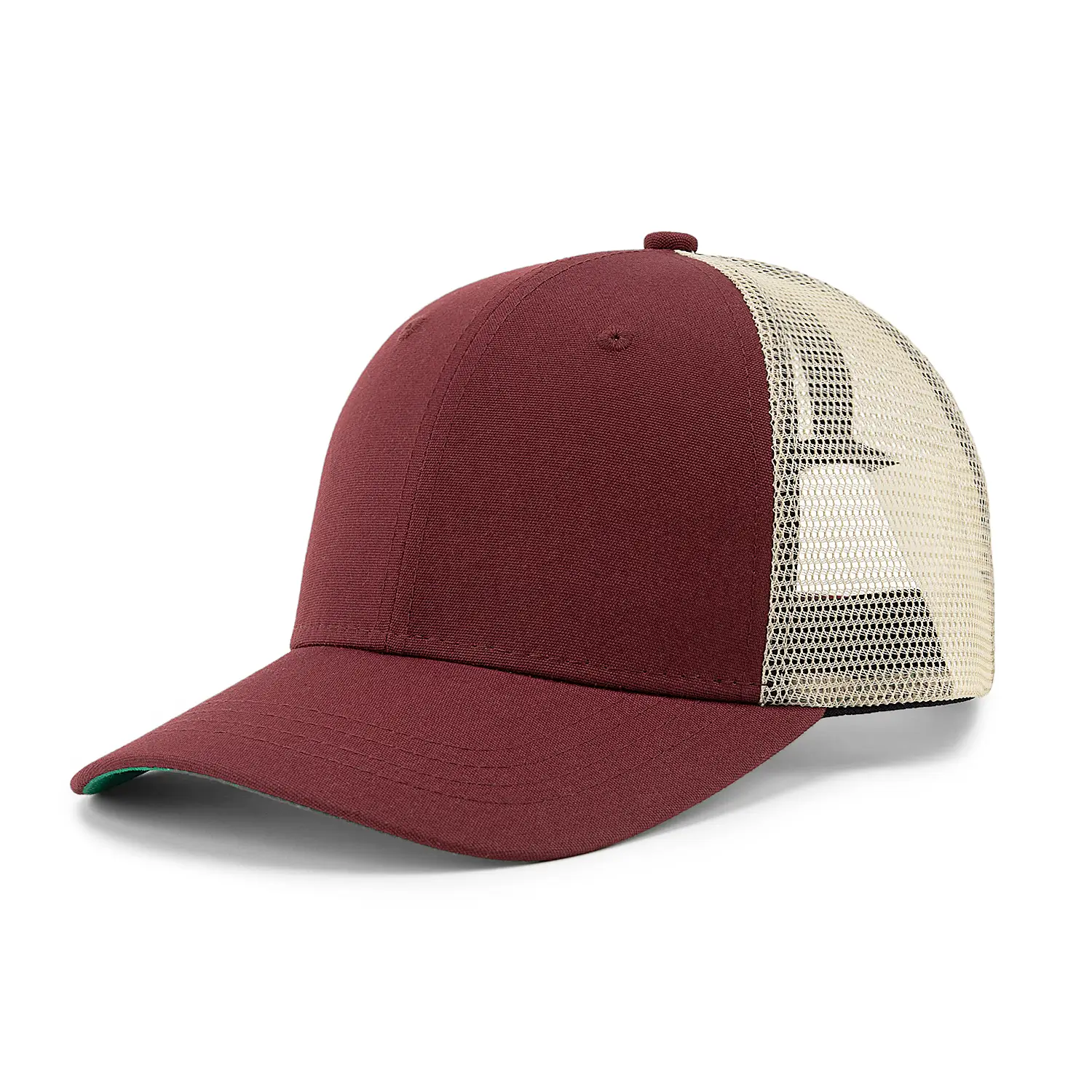 RPET Canvas Vintage Blank Trucker Cap 2-Tone – Embrace eco-friendly fashion with our vintage-style trucker cap, crafted from recycled PET canvas in a stylish two-tone design.